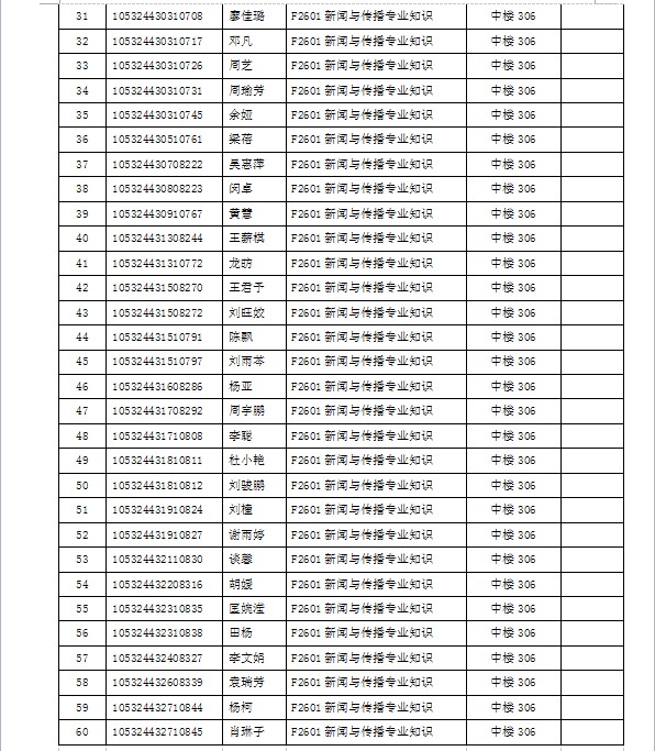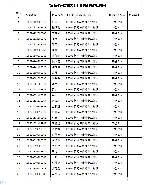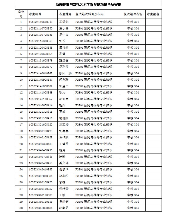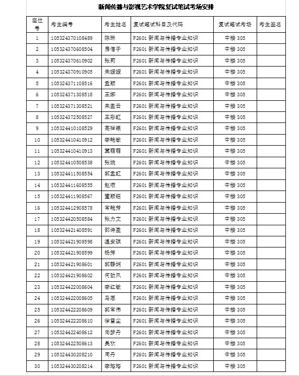 新闻传播与影视艺术学院2014年硕士研究生复试名单