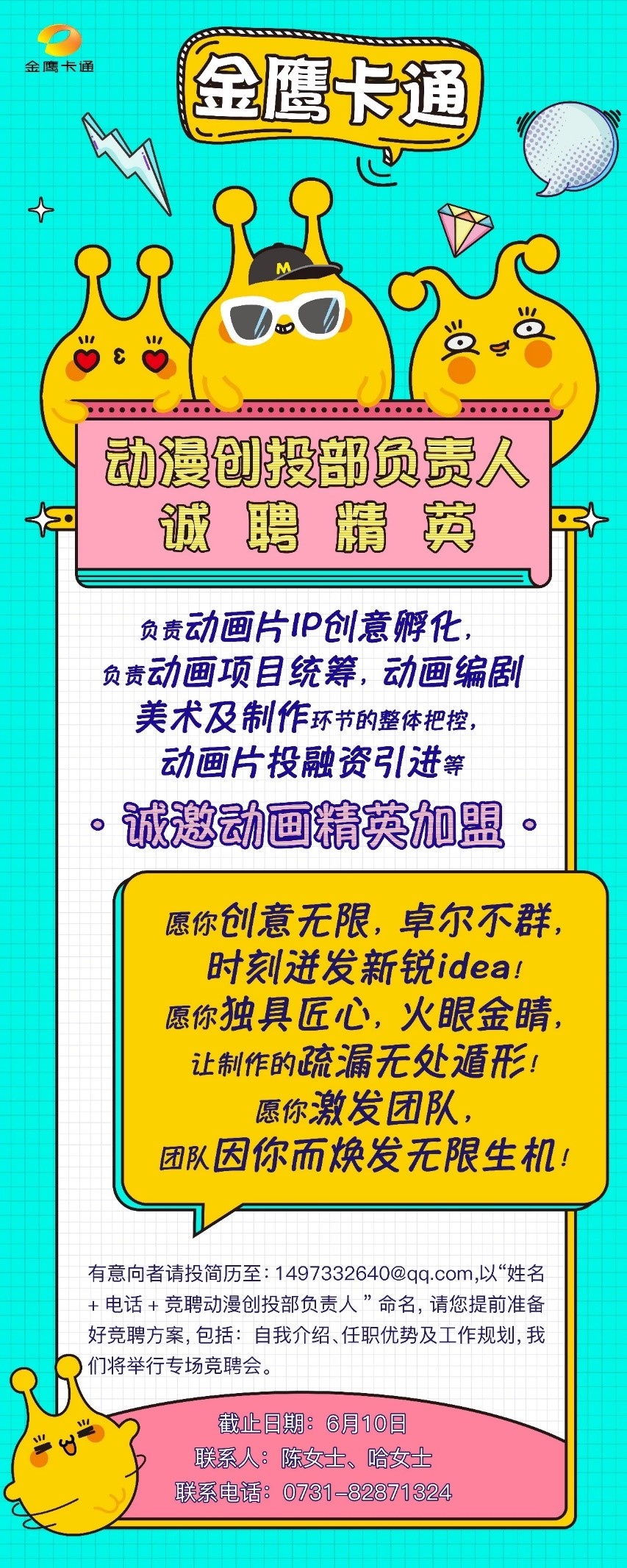 金鹰卡通招聘丨动漫创投步负责人,诚邀动画精英加盟!