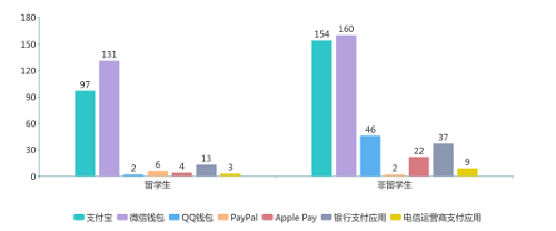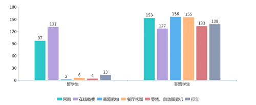大学生是使用移动支付的主力军,其中留学生作为拥有不同国家移动支付深度使用体验的群体,成为了我们主要的调研对象。我们运用访谈法,一方面邀请了各国在华留学生,进行了以“移动支付”为主题的焦点小组访谈。另一方面,我们还采用了深度访谈法,与在国外如英国、日本、澳大利亚、韩国、菲律宾、印度尼西亚等国留学的中国大学生进行了线上采访,从不同角度、不同层面深入了解各国留学生对“移动支付”的使用情况、态度评价和需求建议等。经过访谈,我们发现无论是外国还是中国的留学生,在中国使用移动支付的频率远远高于在国外,而在国外的日常消费则以现金和信用卡消费为主。造成这种差异的原因有很多,如信用卡体系健全与否,网络基础设施普及与否、消费者使用习惯等等。