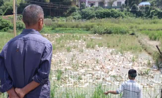 9月9日,记者和罗玉林一行来到了灰汤鸭养殖基地,走过弯弯曲曲的土路,便见到了贫困户张少良家的“鸭子集聚地”。彼时,张少良的儿子正赤脚站在鸭塘中央喂鸭,只见他一声吆喝,鸭子便成群结队地游来觅食。张少良今年已经60多岁了,妻子因患癌去世,留下了两个有智力缺陷的儿子,家里还欠下了一万多的外债。勤奋务实的张少良除去经营自己的稻田,已经养了3年的灰汤鸭,一批大约能养400只鸭子,通过卖鸭子、鸭蛋,一年能够达到4、5万元的纯收入。