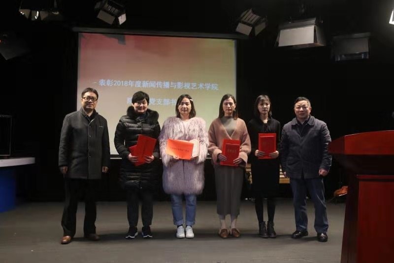首项议程,院长助理谢莹宣读表彰名单。广电教工党支部书记苏美妮、行政教工党支部书记刘佳、硕士研究生2016级媒介经营管理党支部书记李丹阳、硕士研究生广告传播党支部书记张玉霞,获得“优秀党支部书记”荣誉称号。优秀学生党支部书记代表张玉霞从支部工作、支部活动、支部氛围等六个方面做了经验分享。去年她所在的支部组织了岳麓山文明劝导、新年逛街等特色活动,不仅增进了学生对岳麓山文化的了解,还促进了支部成员的交流,营造了活泼和谐、联系紧密的支部氛围。另外,她还总结了一些支部工作经验,譬如轮流策划支部活动、提高参与积极性,重视电子材料的归纳整理、提高工作效率等。