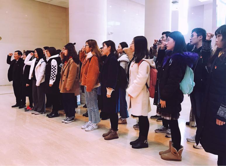 宣誓仪式结束后,同学们进馆参观学习,回顾党的光辉历程,接受红色教育的洗礼。参与本次活动的杨佳佳同学感慨道:"青年时期的毛主席等人就已经开始进行革命运动,作为在校大学生的我们,也应该抓紧青年时光,为社会做出自己的贡献。"