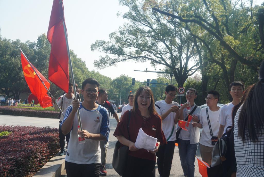 最后由胡建国书记为此次活动授旗,本科2016级、2017级联合党支部书记黄坤林同学接旗,胡书记希望同学们能够圆满顺利地完成活动,并有所收获。在这份精神与力量的传递中,此次主题党日活动拉开了帷幕。