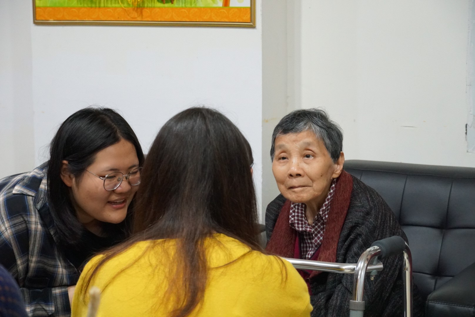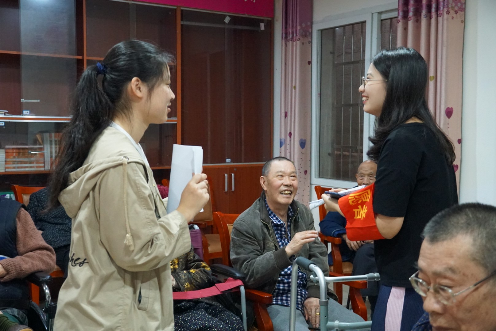 在本次活动中,有老人用上次志愿活动中志愿者教给他们的手语表达感谢,让志愿者很是惊喜感动。“虽然有时听不懂爷爷奶奶说的话,但能看见他们脸上呈现的满满笑容,能够陪着他们笑,我就很开心了”,志愿者马芾涓说。