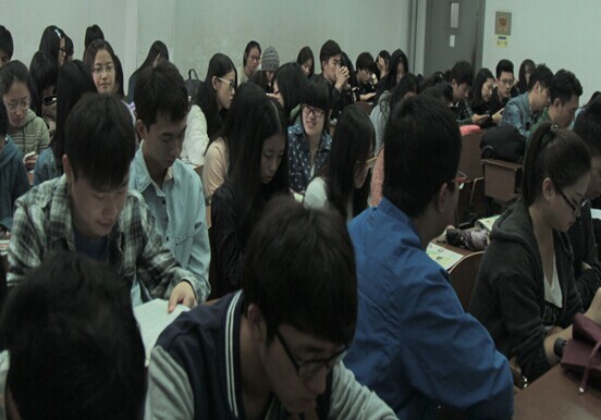 来自三个班的九名代表在读书分享会上先后发言。2013级广告班的李森同学向大家分享了他最近读的与所学专业有关的一本书——《广告战争》。他表示,读这本书时感觉广告和商业的联系使自己很痛苦,甚至老板一句话就可以把你的一切努力抹煞掉,但是广告是一个磨练人意志的职业,可以让人更早的接触社会,它会让你自觉地涉猎各方面的知识。来自播音班的赵星同学则向大家讲述了阅读《小窗幽记》的一些感受。他说,这是一本格言警句类小品文,格言短小精美,促人警醒,书中可以看出涵养心性和为人处事的道理,对同学们感悟中华文化、修身养性,大有裨益。媒体创意班的原承鑫同学结合自己的实践经验,与同学们分享了《佳能60D摄影圣经》一书,他说“拍照时很重要的一点就是光比,图片上光与影的对比程度是基本问题,拍照一定要正确曝光,不能丢失细节。”,他还结合自己的实际情况向大家做了经验介绍。其他几位同学代表也向大家分享了自己喜欢的图书,媒体创意班的一位同学还向大家推荐了她喜欢的一首歌,并当场演唱,气氛十分热烈。