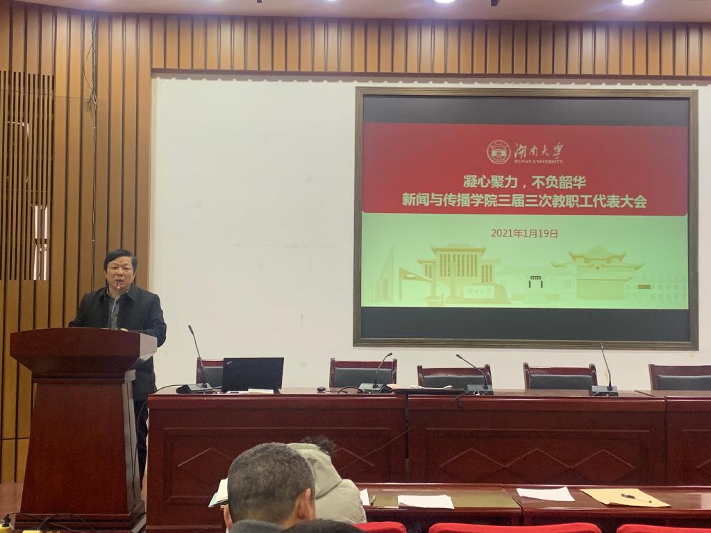 “凝心聚力,不负韶华”三届三次教职工代表大会在北楼217举行。学院党政班子成员、教职工代表50余人在参与了此次大会,会议由党委书记胡建国主持。