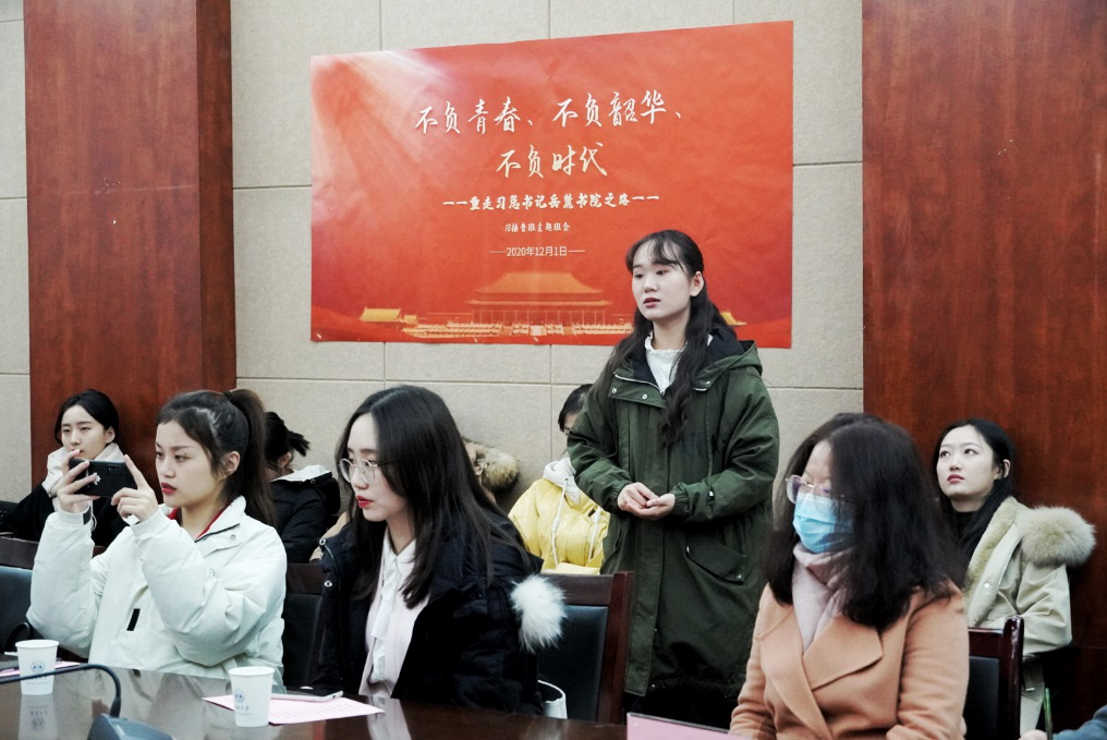 岳麓书院时发表的重要讲话精神,深入贯彻习近平新时代中国特色社会主义思想,在谢校长的带领下,与会师生共同观看习近平考察岳麓书院新闻,共同交流心得,分享体会。