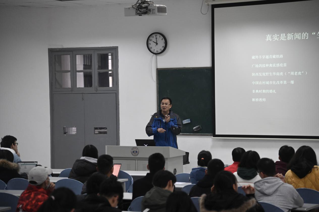 北楼117教室,新华社湖南分社图片总监赵众志,以《敬畏真实 追求卓越——融媒体时代的新闻摄影》主题,为该校新闻学子娓娓道出新闻摄影的真谛。