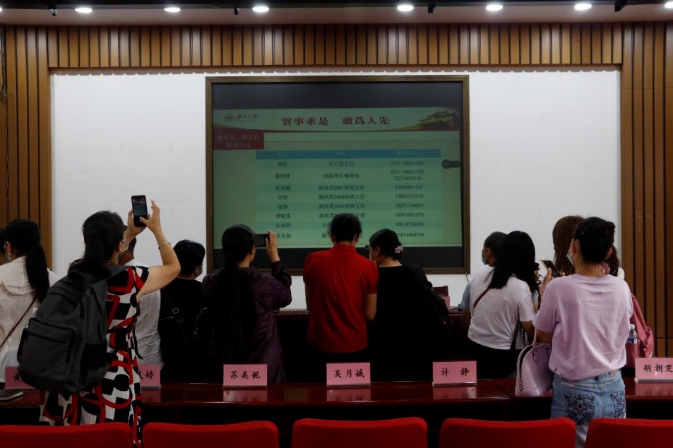 会议结束后,辅导员黄坤林引导新生家长添加学院联系方式,并表示联系渠道是开放且畅通的,以后有任何问题都可以方便联系。