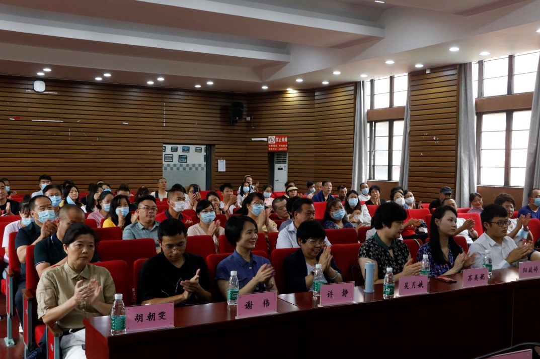 会议第二部分,院党委书记胡建国讲话。胡建国书记代表新传院全体老师向2020级的新生家长们郑重承诺学院将以最认真负责的态度和最高标准的教学质量来培养新生。