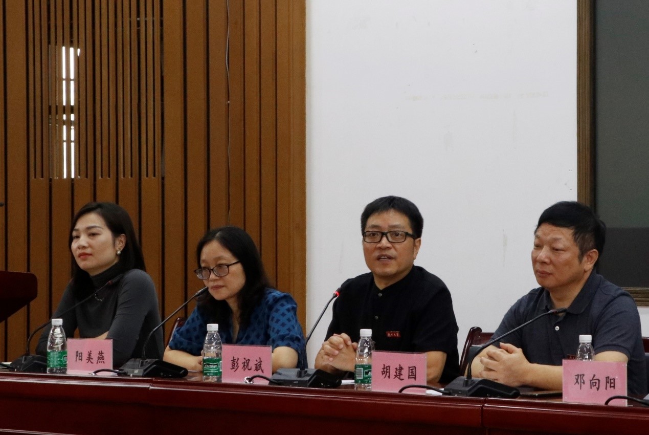 会议由新传院副院长阳美燕主持,出席会议的有院长彭祝斌、院党委书记胡建国、院长助理邓向阳以及院长助理李滨等领导班子,同时还有院学工办主任刘佳、2020级新生辅导员黄坤林和各班班主任。