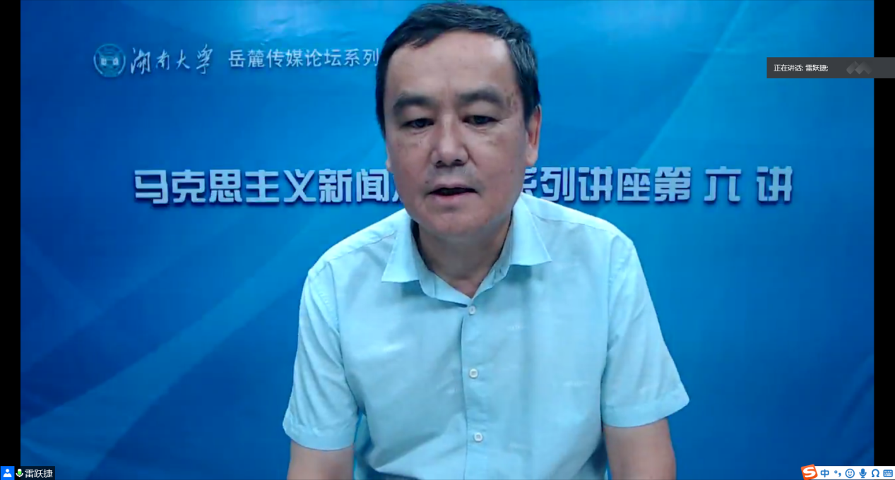 “在未来,同学们应在新闻实践活动中落实马克思主义新闻观,为时代、为人民承担新闻工作者的责任,培养媒体自觉意识,不负时代和人民的期望。”最后,雷跃捷教授对同学们给予了一份期待,2020年上半年度的马克思主义新闻观系列主题学术讲座也至此落下帷幕。