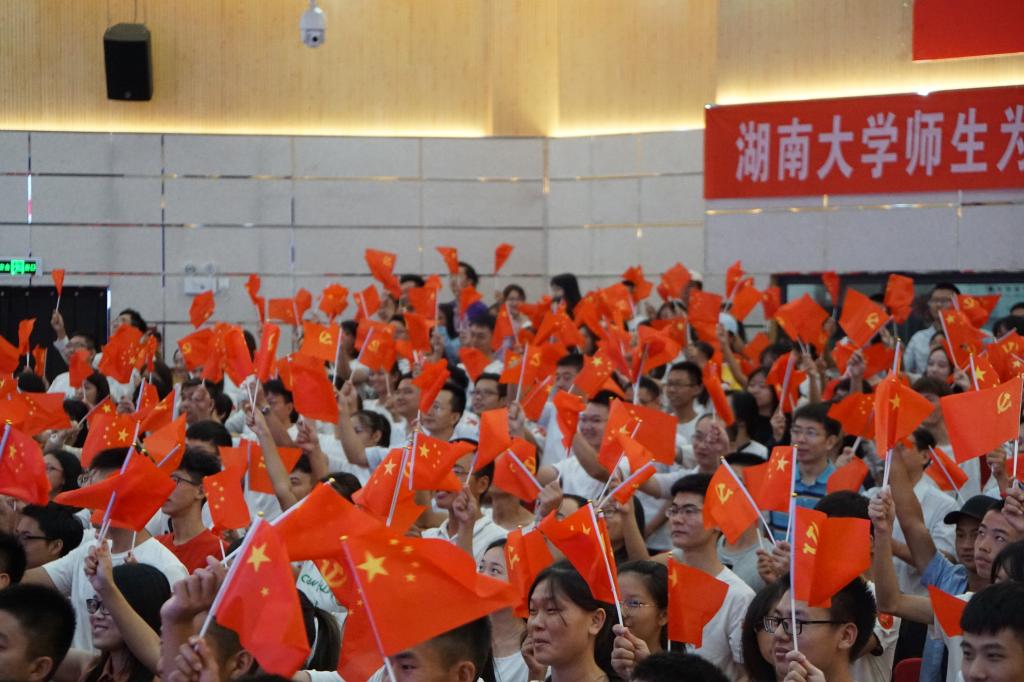 在合唱歌曲《歌唱祖国》之后,全体师生开始观看庆祝中华人民共和国成立70周年大会的直播。在大会中,习总书记强调:“中国的昨天已经写在人类的史册上,中国的今天正在亿万人民手中创造,中国的明天必将更加美好。”而祖国的明天掌握在你和我的手中,掌握在每一个湖大人的手中,掌握在每一个中国人的手中。