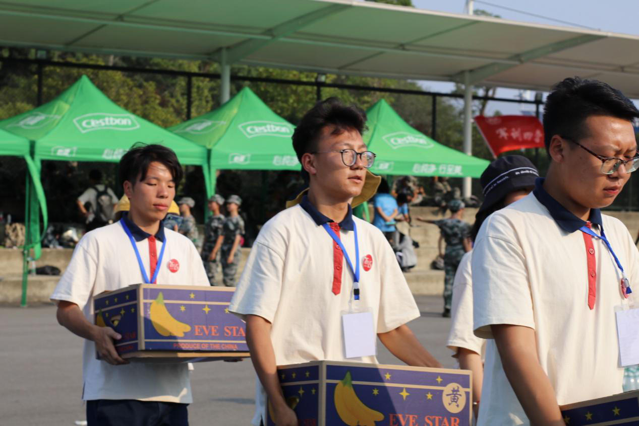 随后,老师和新生助理们向新生发放了香蕉作为慰问,希望香蕉能帮助新生补充身体能量,让他们得以努力奋斗,坚持训练。