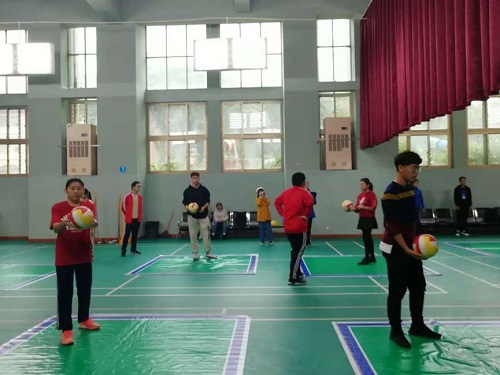 乙组排球垫球比赛。检录时阴云密布,凉风瑟瑟,参赛选手们丝毫没有被消灭斗志。在进入馆内候场时,团队还组织了赛前的练习,积极投入在此项趣味性突出的活动中,不失认真态度。当计时开始,他们全神贯注,力争持久。可以说,他们垫起的不仅仅是排球,更是对新闻传播与影视艺术学院荣誉的追求。