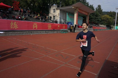 选手范心仪同学一路领先,与第二名拉开较大差距,脚下生风,直飞终点,观众惊呼“太厉害了。”赛后范同学接受采访,在被问及跑完的感受时称:“还好,跑完后有点累。”
