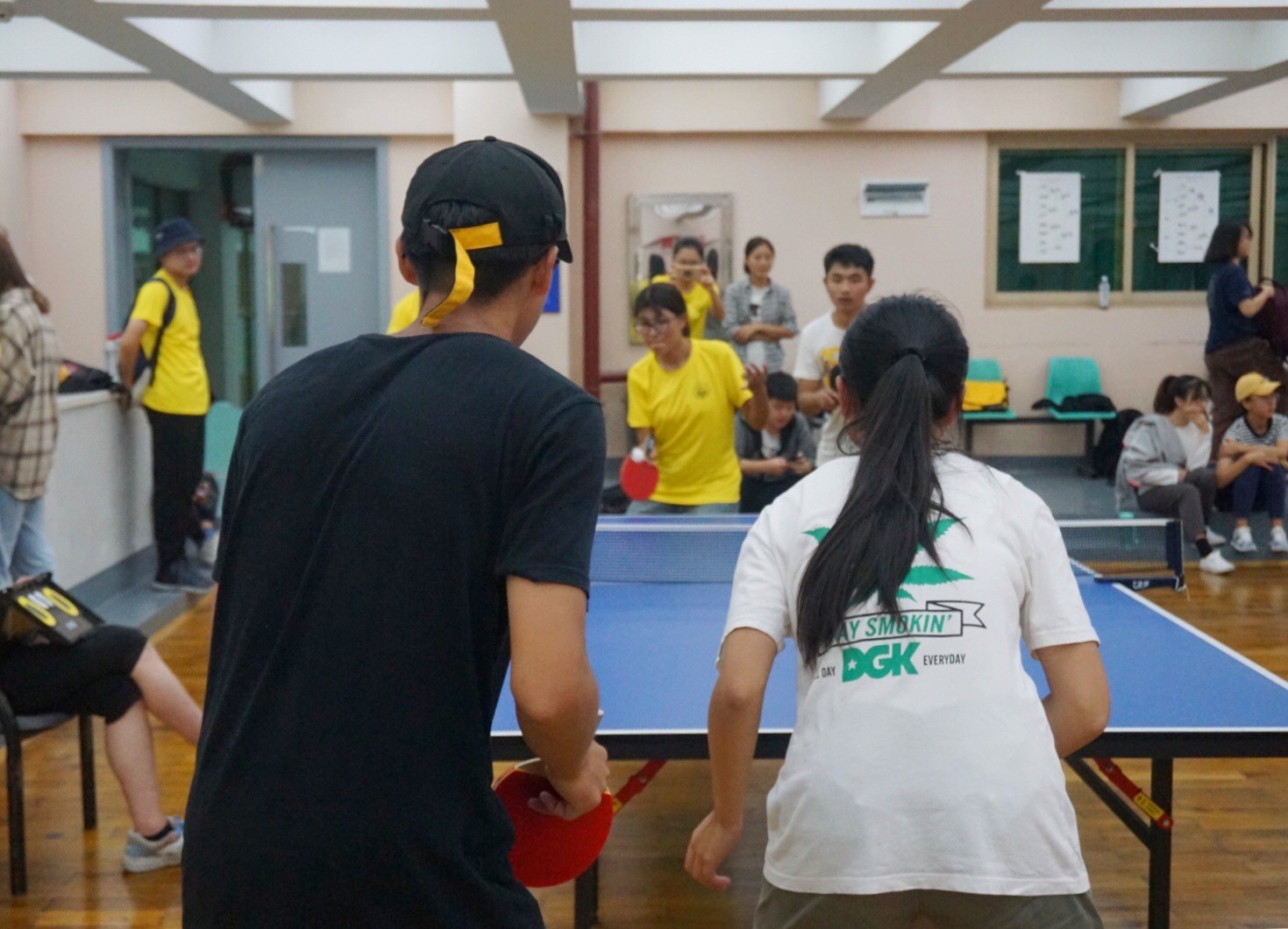 新生杯乒乓球男女混双比赛在体育场举行。 泥巴影院