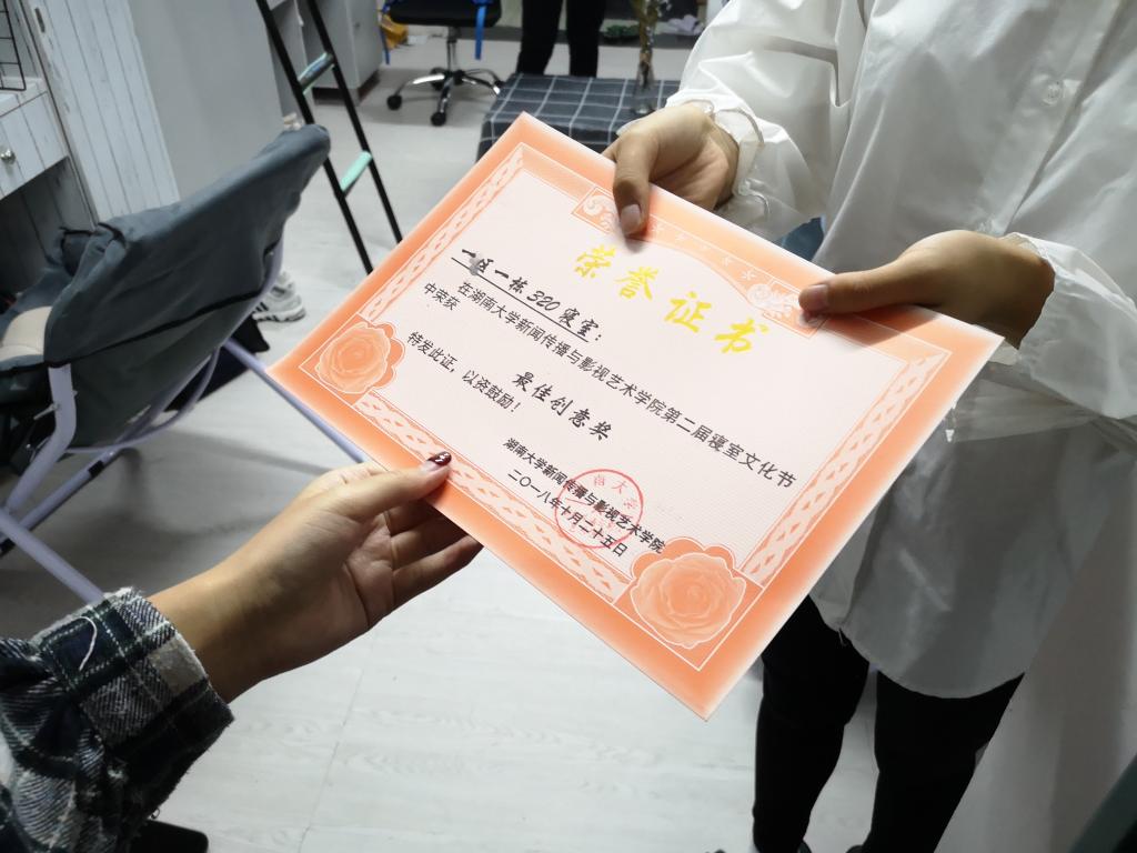 获奖结果产生后,学院为获奖寝室颁发了获奖证书以及精美的纪念品。
