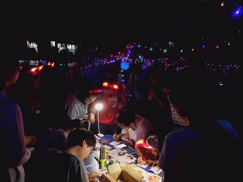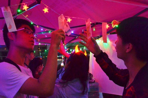 夜幕降临,在天马公寓一片闪烁的灯火之中,一张简单的小桌子旁,许多同学都写下对远方家人和朋友的思念与祝福。一张小小的明信片承载着一份份真真切切的深情。有一个同学这样写给她的父亲:“亲爱的爸爸:今天是中秋节,但是我却在异乡不能回家陪您,在中秋团圆的日子里,我们身在两地望着同一轮明月,我向您保证我会在 泥巴影院