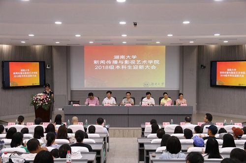 新闻传播与影视艺术学院2018级迎新大会在复临舍201顺利举行,学院院长彭祝斌、党委书记胡建国、副院长向志强、党委副书记兼副院长程华、院长助理莫梅锋、谢莹、阳美燕、18级辅导员刘佳、各系部主任以及18级各班班主任参加会议。