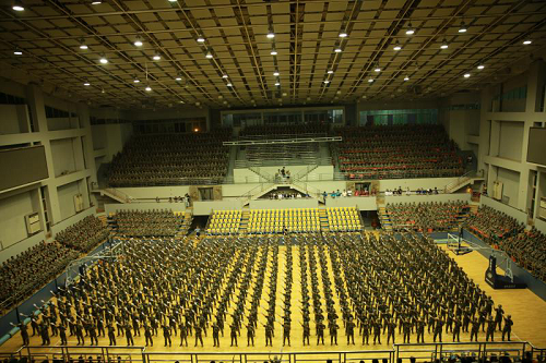 2018级军训歌咏比赛在体育馆顺利举行,新闻传播与影视艺术学院所属的六营在与其他七支队伍的角逐中取得了第四名的佳绩。 本次歌咏比赛参赛曲目分为必选曲目和自选曲目。《解放军进行曲》作为必选曲目,会被每支队伍演唱,但是全体参赛营队各显其能,将舞蹈、朗诵、动作等与歌曲相融合,使得现场的表演别具一格。