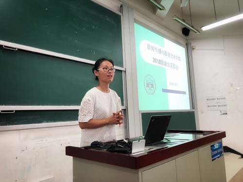 刘婵老师首先代表学院对一百六十余名新同学来到新影学院表示热烈欢迎。她指出,研究生不同于本科生,遇到问题和困难,应及时同老师联系,积极沟通交流。同时,刘婵老师希望同学们能够主动适应研究生阶段的学习和生活,放眼未来,做好人生规划,在这里度过愉快充实的读研时光,不负初心。