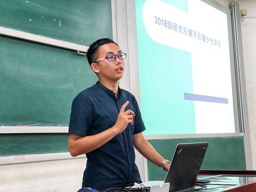 随后,潘少光老师向同学们了交待了学院各项入学教育安排,对于双选会、迎新大会等重要活动做了细致安排。与此同时,他还鼓励同学们积极参与到学院组织的各项活动,踊跃竞选各类学生干部,用数位优秀学长学姐的成功案例告诉同学们,努力就一定会有收获,勉励大家在接下来的研究生生活中努力拼搏,书写属于自己的华美乐章。