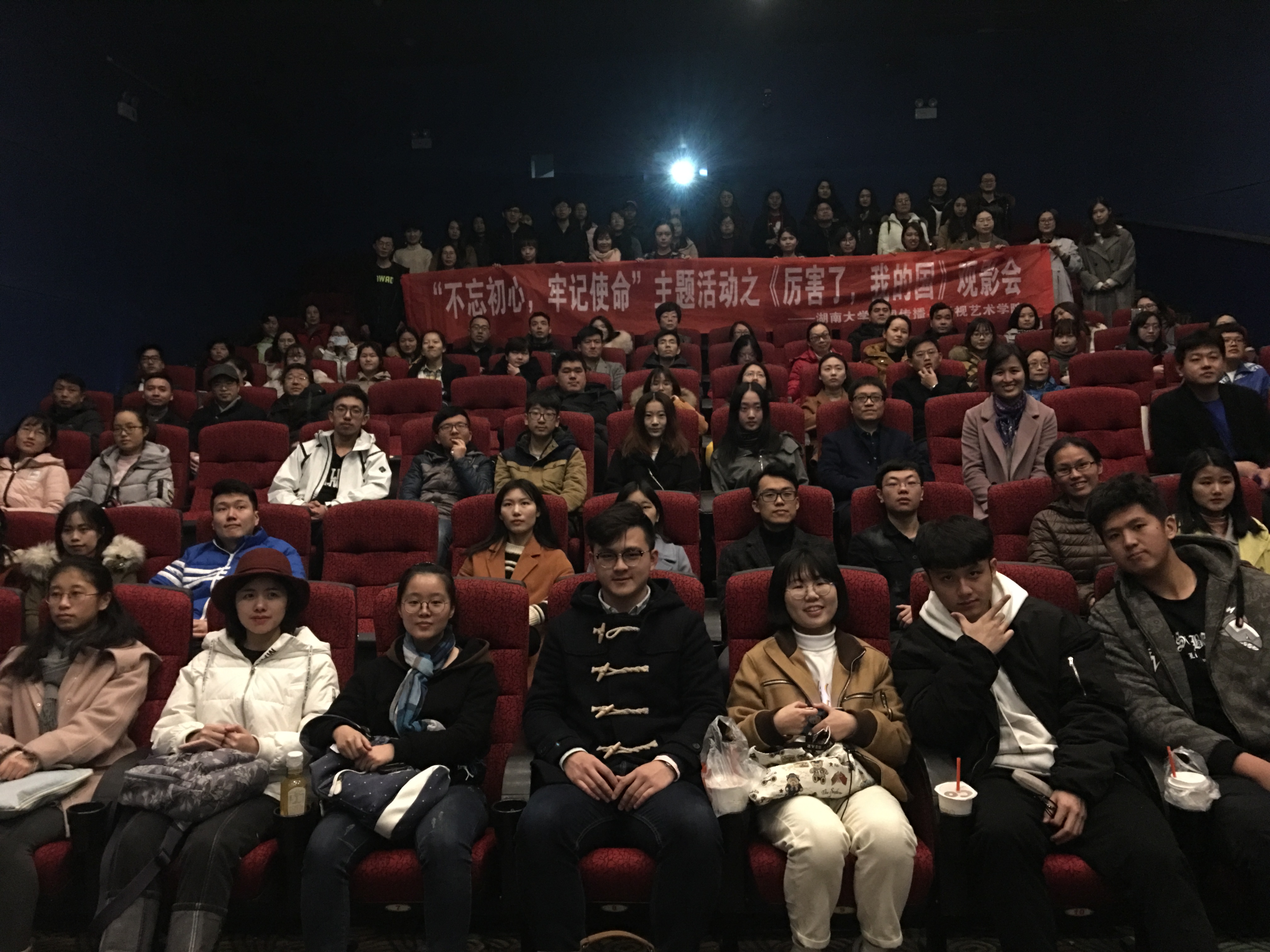 3月20日下午,新闻传播与影视艺术学院全体教工党员、部分教职工代表、学生党员及优秀学生代表等一起前往潇湘影城观看电影《厉害了,我的国》,近一步了解中国近年来的发展变化,切身感受大国风采,强国风貌。