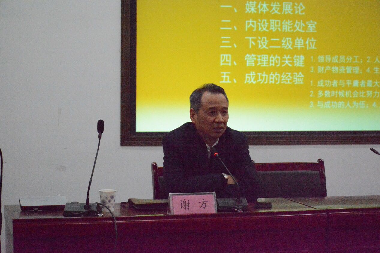 在谈到目前媒体部门的管理模式时,谢方教授认为,媒体管理的关键在于领导成员分工、人才培养激励、财产物资管理以及生产管理创新这四个方面。对于这四个方面,谢方老师以湖南广播电视台为例,向同学们作了详细的介绍。