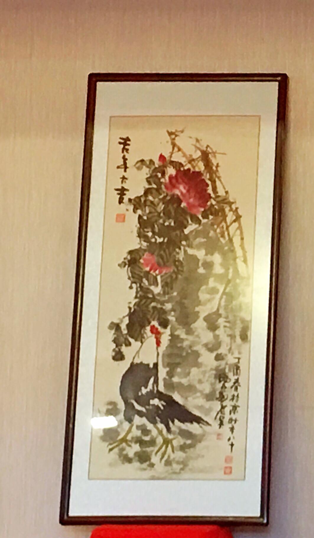 新闻传播与影视艺术学院的国画作品《吉年大吉》。彭祝斌院长在解读这幅作品时风趣地说:“画中的两朵花和一个花蕾,是有寓意的。第一朵花是武汉大学新闻学院,武汉大学新闻学院在吴院长的创立和带领下,经过多年来的努力,如今已发展得如日中天。以这朵花为底蕴的上面那朵花是 泥巴影院