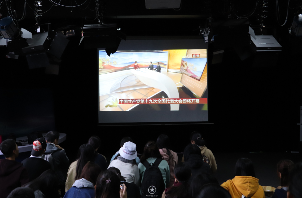 10月18 日上午9点,中国共产党第十九次全国代表大会开幕式在人民大会堂大礼堂举行。全国亿万人都在关注这场盛会,新闻传播与影视艺术学院的同学们也都早早赶到北楼演播厅一同观看开幕式直播。演播厅中,同学们跟随着电视直播中的流程一同唱起国歌,缅怀老一辈革命家,现场气氛严肃而庄重。